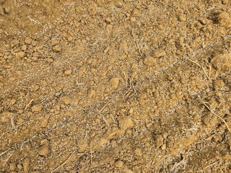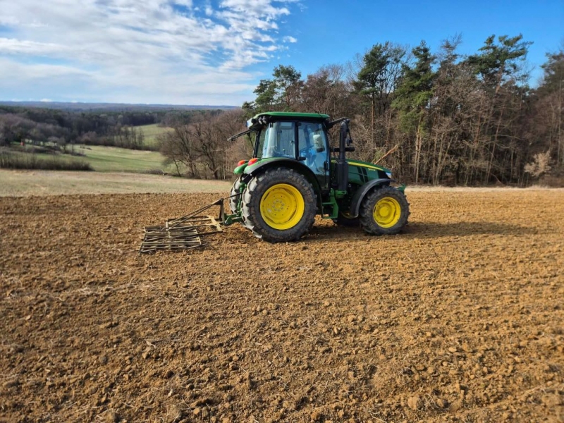 Before sowing, the fields had to be carefully prepared. The soil was first cultivated using a rotary harrow to loosen and level the surface, creating suitable conditions for small seeds. The seed mixture was then evenly distributed, lightly incorporated into the soil, and the surface rolled. This improved seed-to-soil contact and created favourable conditions for germination.