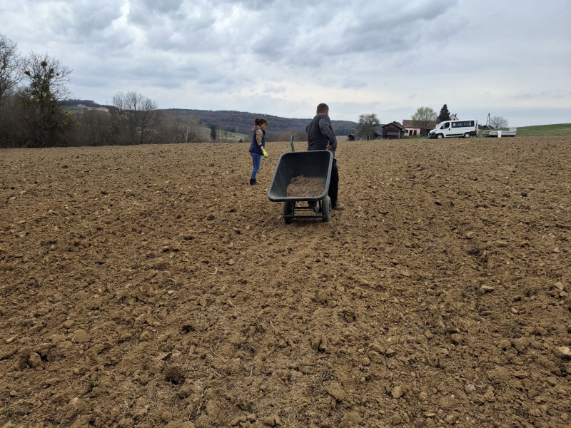 At the end of last year, the Public Institution Goričko Nature Park purchased two arable fields in Budinci and one in Pertoča. As the institution primarily manages grasslands, the LIFE FOR SEEDS project has provided an opportunity to restore these areas back into meadows. This spring, both fields in Budinci were sown with a local seed mixture, while sowing in Pertoča will follow shortly.