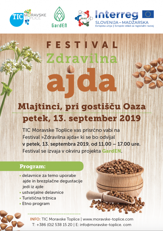 Aktivnost se izvaja v okviru projekta GardEN v okviru Programa sodelovanja Interreg V-A Slovenija-Madžarska 2014-2020. Festival zdravilne ajde je del spremljevalnega programa Državnega tekmovanja oračev v Sloveniji in državnega tekmovanja dijakov biotehničnih šol v oranju, ki se izvaja od 12.9.-14.9.2019.