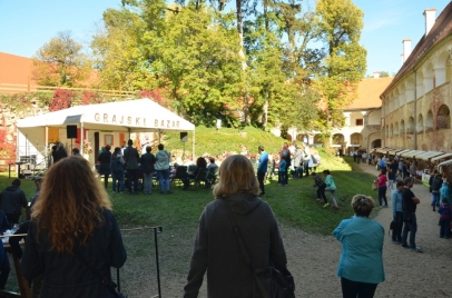 V soboto, 12. oktobra 2019, so grajsko dvorišče napolnili razstavljavci ročno izdelanih predmetov za vsakdanjo in praznično rabo ter z dobrotami z goričkih kmetij. Z obiskom sta nas počastila predsednik državnega zbora, mag. Dejan Židan, predsednik skupnosti Naravnih parkov Slovenije, g. Robert Smrekar, županja občine Grad, Cvetka Ficko in podžupan občine Moravske Toplice, Andrej Baligač.