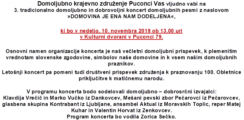 Domoljubno krajevno združenje Puconci Vas vljudno vabi na