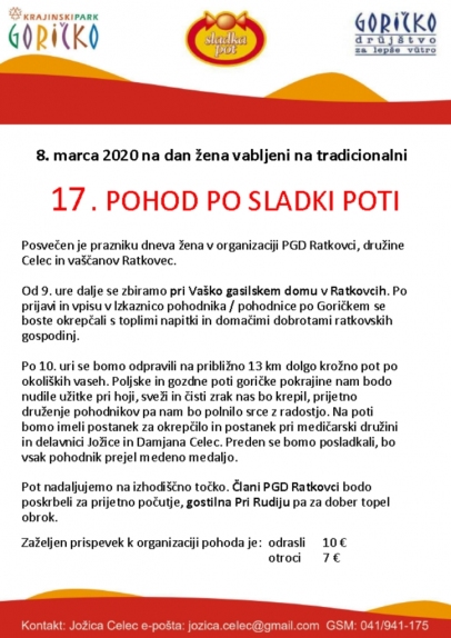 Zbiranje: od 9. ure dalje pri vaško gasilskem domu v Ratkovcih