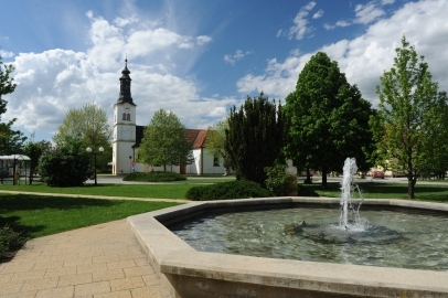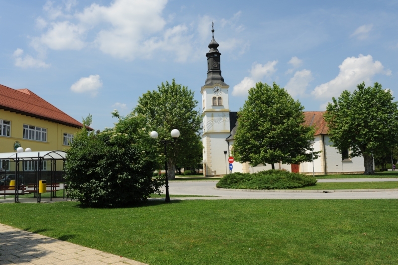 The most significant building of the  village in the central square of Cankova was built in 1718 with western belfrey and renovated in 1754. The presbytery is as wide as a nave. The church has a cross-shaped floor plan. The simple exterior of the church is adorned with corner rustics, mortar borders around the windows and a profiled attic wall. We enter the church to the south through the entrance under the high bell tower.  The presbytery in the north is as wide as the nave and on the east and west sides are chapels. From the presbytery we step into the sacristy, which joins the north side of the west chapel. The arches of the nave and the side chapels are decorated with decorative paintings of saints and the central scene with Joseph and Mary and two angels above them. Year 1900 is inscribed in the presbytery of decorative arch. The decoration of the vault is complemented by the figures of saints Peter and Paul on the side walls of the presbytery. The martyrs are standing in semi-circular niches. We recognize Peter by the key he holds in his left hand and Paul by the sword, an attribute of his martyrdom. On the center, main wall of the presbytery is Kregars scene of Joseph with Mary, supplemented by angel figures with inscriptions. In 2004 the church was renovated and repairs  disturbing figures that were depicted on emphasized background. After repainting of the painting from 1900, Kregars fresco was stripped of the natural color frame; the fresco was re-established after the restoration work. On the part of the arch above the central scene is depiction of two angels on clouds.  The figure of two saints in and scenes of angels is complemented by four more evangelical figures on the lower part of the vault. In the presbytery are depicted Luke and Mark, Matthew and John in the nave. Evangelists are depicted as sitting  in the hand have a pen with which they writing the gospel.