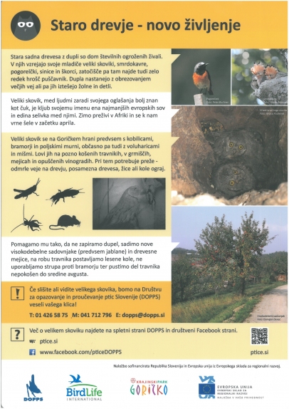 Beside or on the habitat trees, information boards on Scops owl will be placed as an information for locals and visitors of the Natura 2000 Goričko area.
