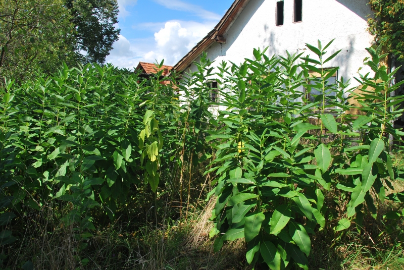Razraščanje sirske svilnice v okolici zapuščene hiše v Dolnjih Slavečih (foto: M. Podletnik)