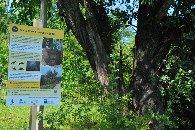 During the summer of 2020, the employees of Nature park Goričko Public Institute marked 50 old high-trunk fruit trees with cavities which are suitable for nesting of the Scops owl, with special awareness signs. Such trees are called habitat trees. The habitat trees were selected according to their suitability for Scops owl by DOPPS- Birdlife Slovenia and Gorička krajina project partner. Such cavities where cavity-nesting birds can nest are not used only by Scops owl. They are key feature also for hoopoe and common redstart. Signs present the importance of conservation of old high-tree trunk fruit trees that have cavities in the trunk. Brief presentation of the Scops owl ecology and its conservation measures are also presented.