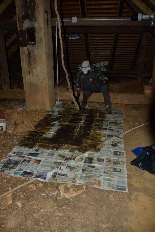 Brother Jurij sweeps up the guano (photo: G. Domanjko)