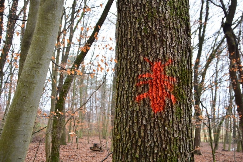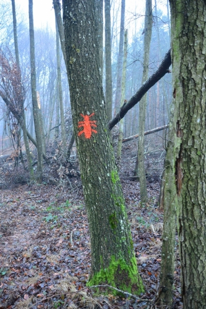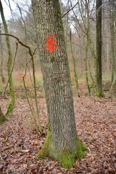 The forest owners will receive a financial compensation of 90 EUR for the girdling of each tree. Number of trees was limited by individual landowner on maximum 15 in one or maximum 30 in two cadastral zones. The trees were selected by mutual agreement of landowner and our forester. Tree species, selected as suitable, were sessile or common oak, black locust, bird cherry, common aspen or black alder. After girdling, the trees will remain in the forest for at least 20 years. All 120 habitat trees are marked with a red beetle symbol.