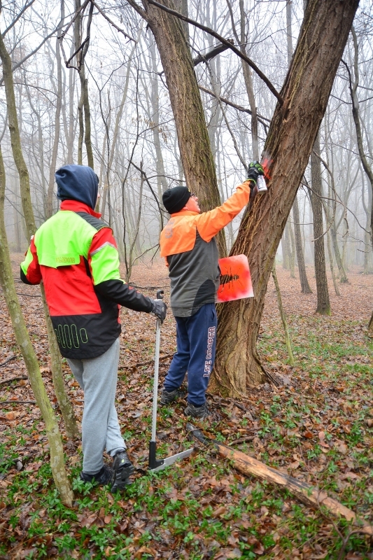 In order to established suitable habitat trees for cinnabar flat bark beetle, the landowners that applied to public appeal will sign a nature conservation contract within the project Gorička Krajina. In accordance to its terms of agreement they will carried out girdling of selected trees. The trees were selected on their adequacy and marked with a special sign. All selected trees have a diameter from 35 to 70 cm. Girdling is a measure whereby the outer bark, cambium and the last few annual rings of wood are sawn, which weakens the tree and eventually causes the death of the tree.