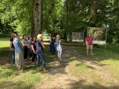 V četrtek 14.7.2022 smo sodelavci Javnega zavoda Krajinski park Goričko tudi uradno otvorili razstavo fotografij velikega formata v našem grajskem parku. Tomaž in Gregor sta nas popeljala po razstavi in z zanimivimi in poučnimi opisi fotografij popestrila otvoritev.