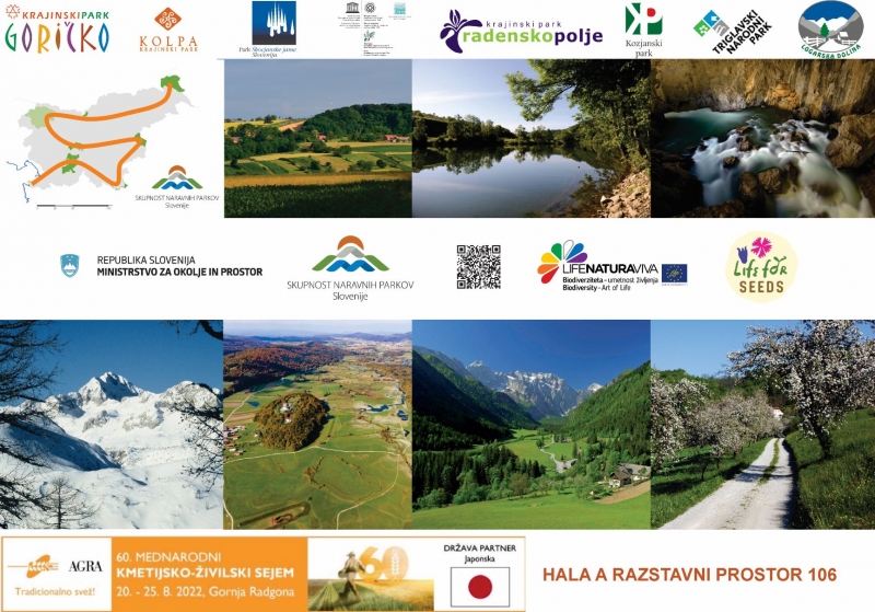 Na razstavnem prostoru Skupnosti naravnih parkov Slovenije, Ministrstva za okolje in prostor, se bodo v hali A na 60. AGRI v Gornji Radgoni med 20. in 25. avgustom predstavili: