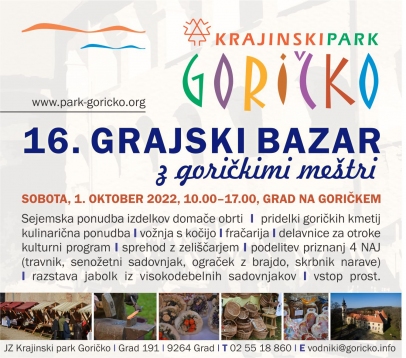 Javni zavod Krajinski park Goričko in Goričko drüjštvo za lepše vütro vabita na že 16. bazar na grajskem dvorišču.