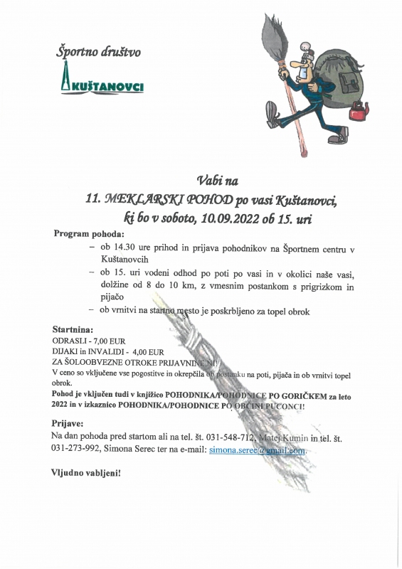 Vljudno vabljeni na pohod v vas Kuštanovci v občini Puconci. Več informacij najdete v vabilu.