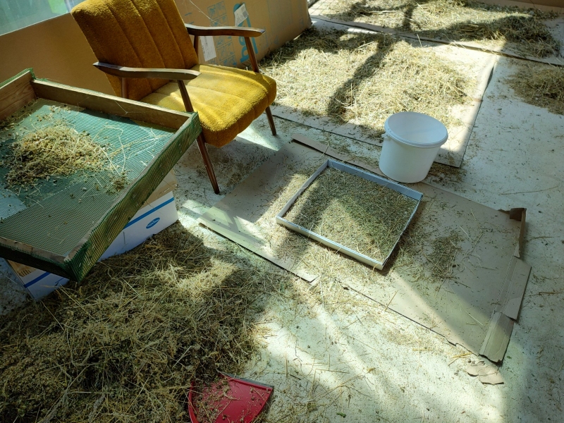 The seed material was dried for several weeks in special rooms in the Grad Castle. We had to take care not to spread the mixture too thickly, as this made drying more difficult, and we had to stir it several times during the first few days of drying to prevent it from moulding. When it was dry after about three to four weeks, the seed coats were removed and the material was then sieved by hand using a specially made sieve. The drier the seed, the easier it was to sow. The aim of the thinning was to remove all unnecessary plant parts (e. g. stems, leaves), thus reducing the amount of material. This will help us in the autumn, as we will be sowing manually in the species-poorer meadows of habitat type HT 6210 (*). We are less than a month away from sowing.