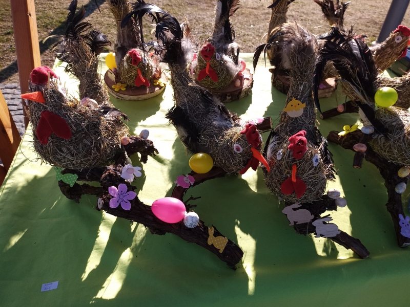 Vabljeni na bogato založene stojnice z izdelki lokalnih ponudnikov. Prodajale se bodo domače dobrote, kot so: šunka in ostale mesnine, hren, jajca, kruh, jogurti, sir, skuta, mleko, olja, kis, med, likerji, medenjaki, velikonočni aranžmaji, okrasni lončki idr.