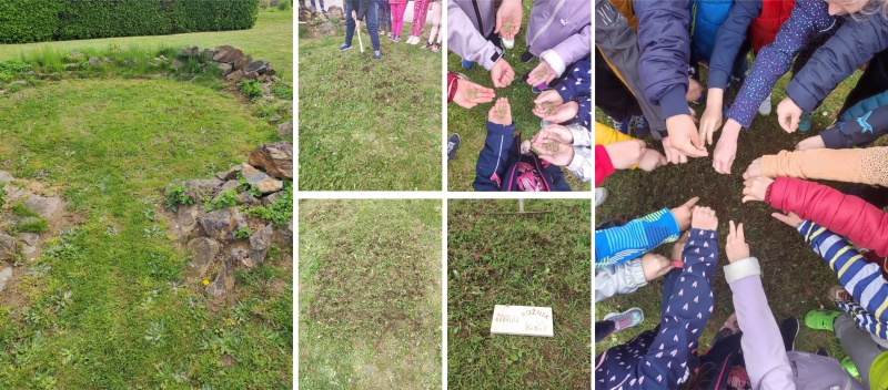 Posejana semena travniških rastlin pri POŠ Bodonci A. Fajs