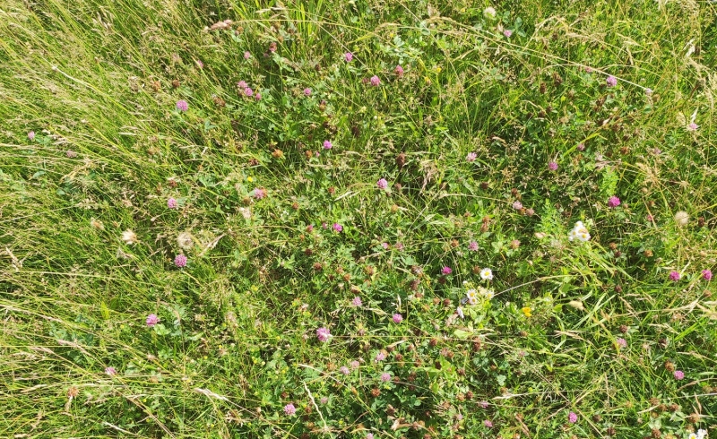 Travnik pri OŠ Fokovci pred pošitnicami. Semena so vzklila in travnik je zacvetel. Opraševalci zagotovo najdejo hrano. M. Kološa