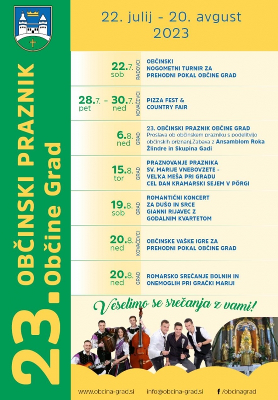 23. Občinski praznik Občine Grad - proslava in zabava prestavljeni na 12. 8. 2023!