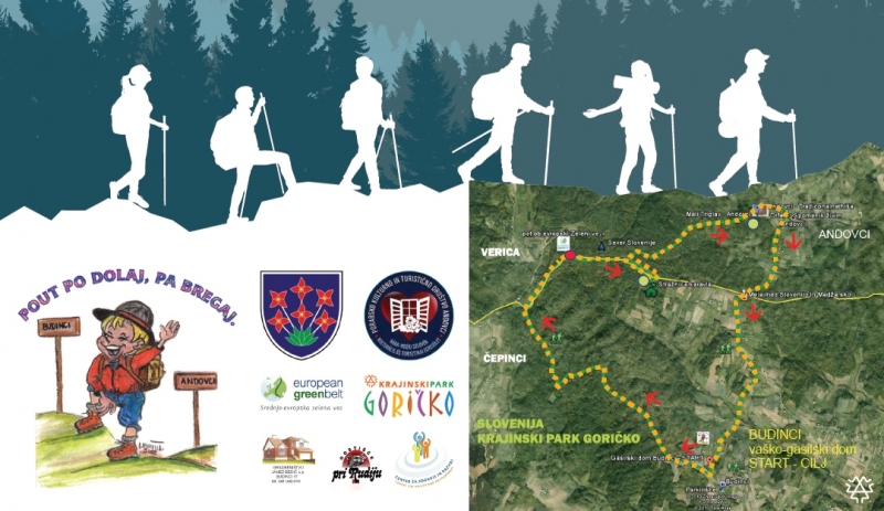 Pot nas bo od vaško-gasilskega doma Budinci vodila skozi gozd mimo mejnih kamnov do mesta, kjer je nekoč v Budincih stala karavla. Po krajšem postanku se bomo odpravili čez mejo v Porabje, kjer nas bodo v Andovcih pri malem Triglavu pričakali domačini. Po okrepčilu sledi še zadnji del poti do začetne točke pohoda v Budincih, kjer bo topla malica.