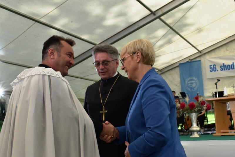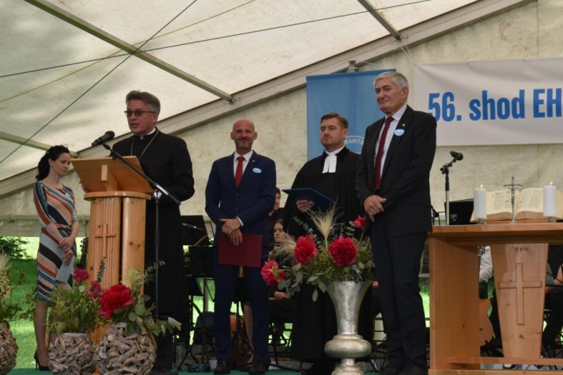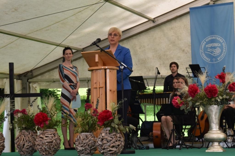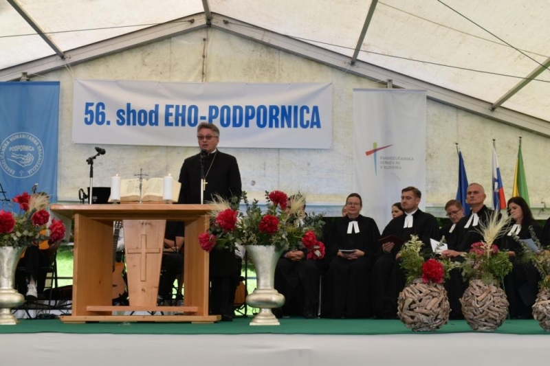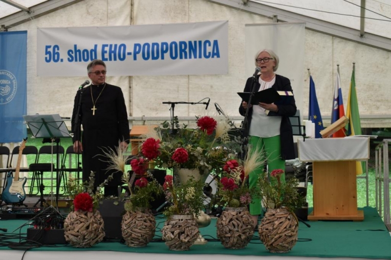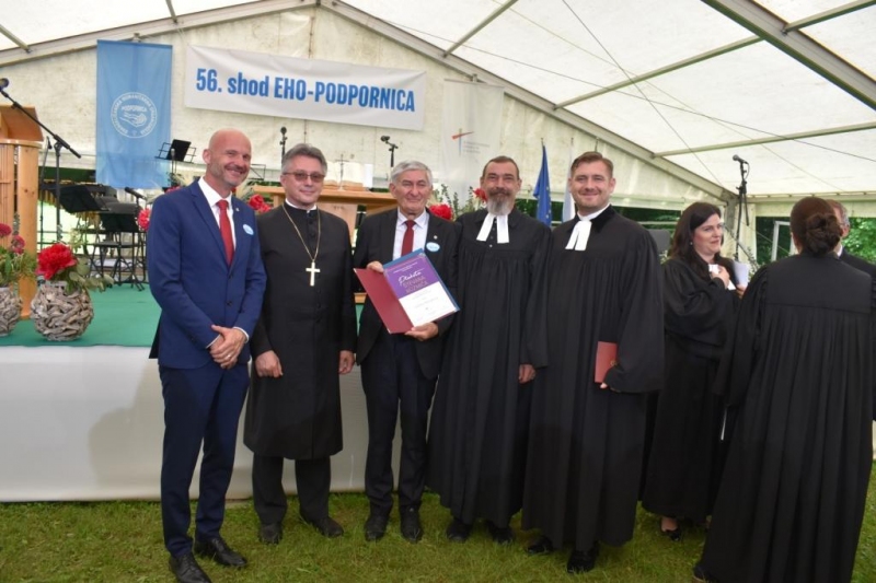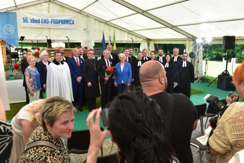 Bogoslužju, ki ga jee neposredno prenašala RTV Slovenija, so sledili slavnostni nagovori predsednice R Slovenije, dr. Nataše Pirc Musar, županje občine Grad, ge. Cvetke Ficko in škofa Evangeličanske cerkve AV v Sloveniji, g. mag. Leona Novaka. Sledila je izročitev plakete Štefana Küzmiča EC AV v RS in zahvalne plakete EHO-Podpornica g. Jožetu Rituperju, ki je bil več let dejaven v EHO Podpornici.