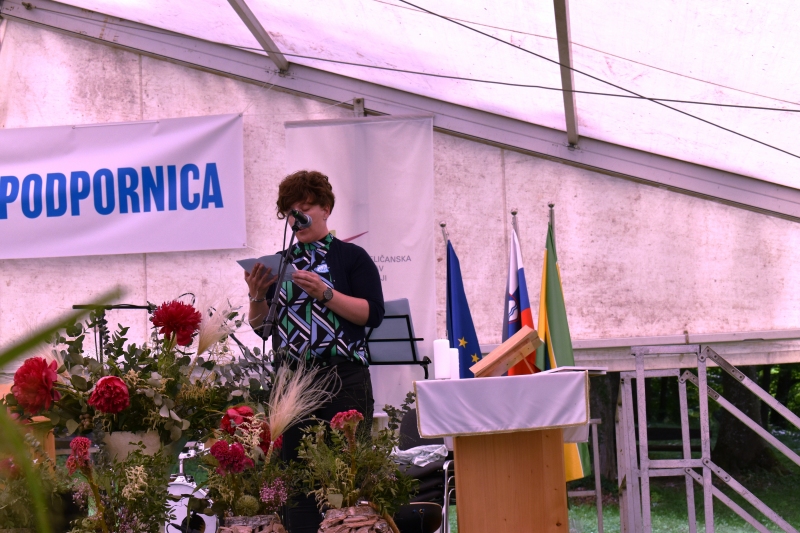 V sproščenem vzdušju se je druženje nadaljevalo v prireditvenem šotoru, kjer so vse prisotne nagovorili gostje iz tujine, predstavnica Javnega zavoda Krajinski park Goričko in Mihaela Žökš, ki je prebrala pismo katoliškega župnika pri Gradu g. Aljaža Baša.