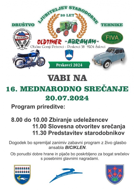 Organizator: Društvo ljubiteljev starodobne tehnike Oldtimer Abraham