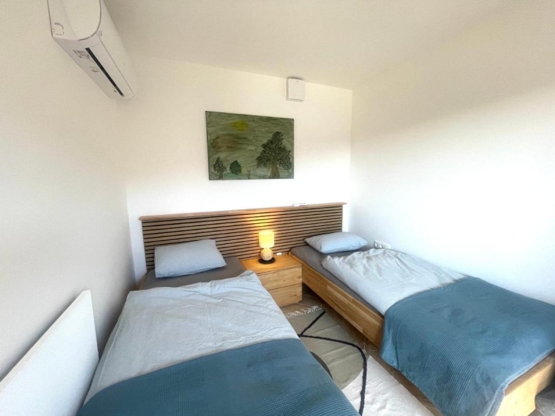 The air-conditioned villa consists of several separate bedrooms (2), a living room, a fully equipped kitchen with a refrigerator and a dishwasher, and several bathrooms (2). Guests have towels and bed linen at their disposal in the villa. The accommodation offers a sauna. The offer also includes an outdoor pool and a large garden. The villa is located in the heart of the Goričko Landscape Park and is an excellent starting point for hiking or cycling.