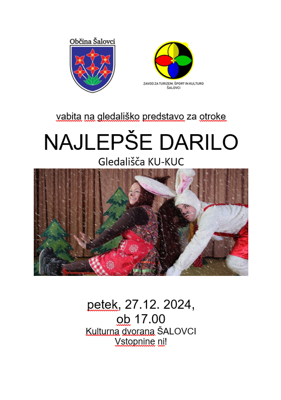 Občina Šalovci in Zavod za turizem, šport in kulturo Šalovci vabita na gledališko predstavo za otroke NAJLEPŠE DARILO gledališča KU-KUC.