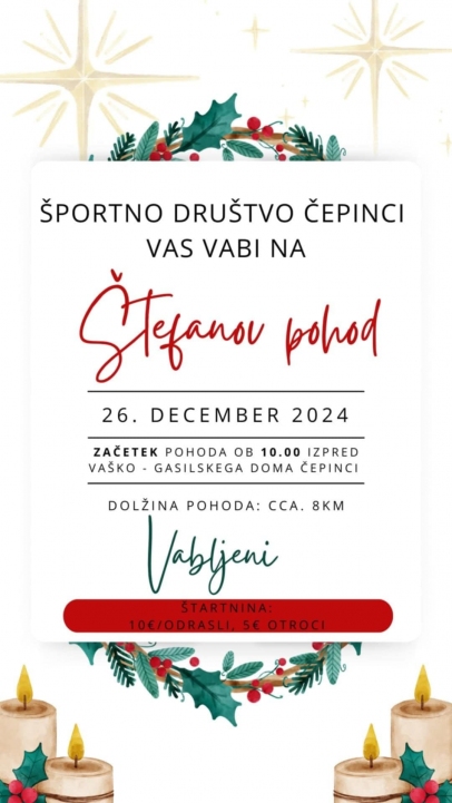 Krožna 8 kilometrov dolga pot bo vodila po obronkih vasi Čepinci, na poti čaka pohodnike tudi okrepčilo, na koncu pa še topla malica. Štartnina znaša za odrasle 10 evrov, za dijake in študente pa 5 evrov.