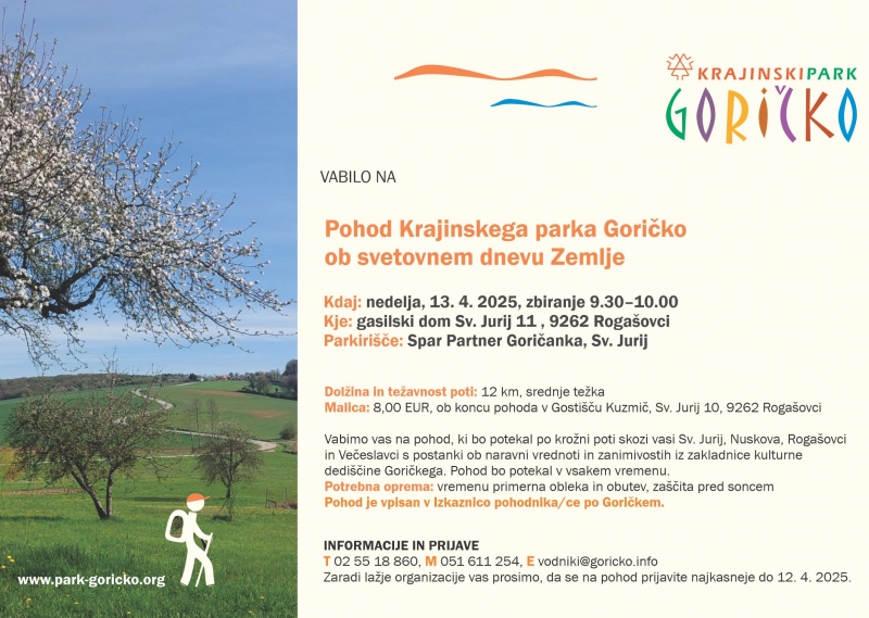 Vabljeni na pohod, ki bo potekal po krožni poti skozi vasi Sv. Jurij, Nuskova, Rogašovci in Večeslavci s postankom ob naravni vrednoti in kulturni dediščini Goričkega. Pohod bo potekal v vsakem vremenu.