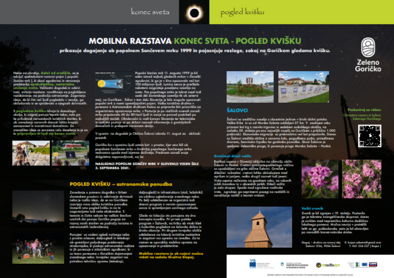 Razstava prikazuje dogajanje ob popolnem Sončevem mrku 1999 in pojasnjuje razloge, zakaj na Goričkem gledamo kvišku.