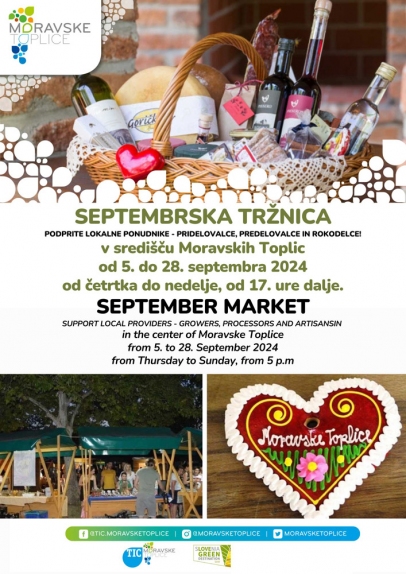 Termini tržnice: v septembru med četrtki in sobotami, od 17. ure naprej.
