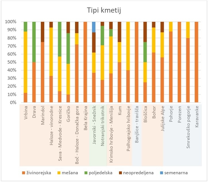 Slovenija, tudi Goričko, ima še vedno največji delež mešanih kmetij. Medtem ko na Goričkem za mešanimi kmetijami prevladujejo poljedelske, drugod po Sloveniji pa živinorejske. Kot živali prevladuje govedo. Na Goričkem so za govedom prašiči in perutnina, medtem ko drugod po Sloveniji drobnica in perutnina. Vse ostale živali so v manjšem obsegu, z izjemo konj, ki so v Sloveniji na 4 mestu po pojavnosti na anketiranih kmetijah.