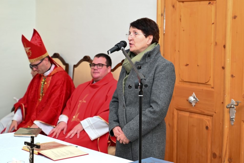 Uvodoma sta g. škofa in zbrane pozdravila direktor Javnega zavoda Krajinski park Goričko g. Andrej Smodič in predstavnica pastoralnega sveta Župnije Grad g. Mihaela Žökš. Pri sv. maši so z branjem prošenj sodelovali veroučenci karitativne skupine in cerkveni pevci domače župnije.