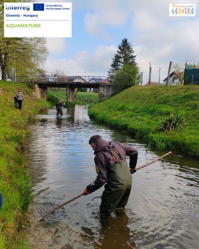 Čistilna akcija ob Kobiljskem potoku v kraju Kobilje, v okviru projekta AQUNATURE