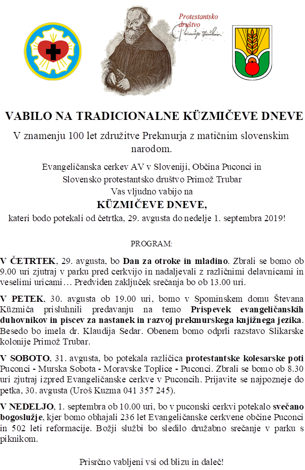 Vas vljudno vabijo na KÜZMIČEVE DNEVE,